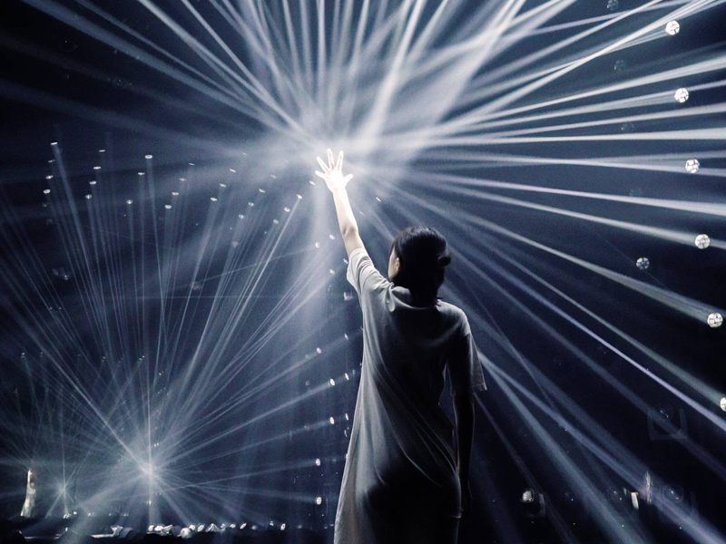 作品《小宇宙群》也是首次展出,幾百個(gè)光球在各自的軌道上移動(dòng),如果前面有光球的話(huà),它們會(huì)減速,反之會(huì)加速移動(dòng)。而在另一個(gè)空間里,作品《光雕塑群》,則由1000多臺(tái)光速燈向各個(gè)方向發(fā)出光線(xiàn),光線(xiàn)穿過(guò)觀看的人們,使其成為作品的一部分。